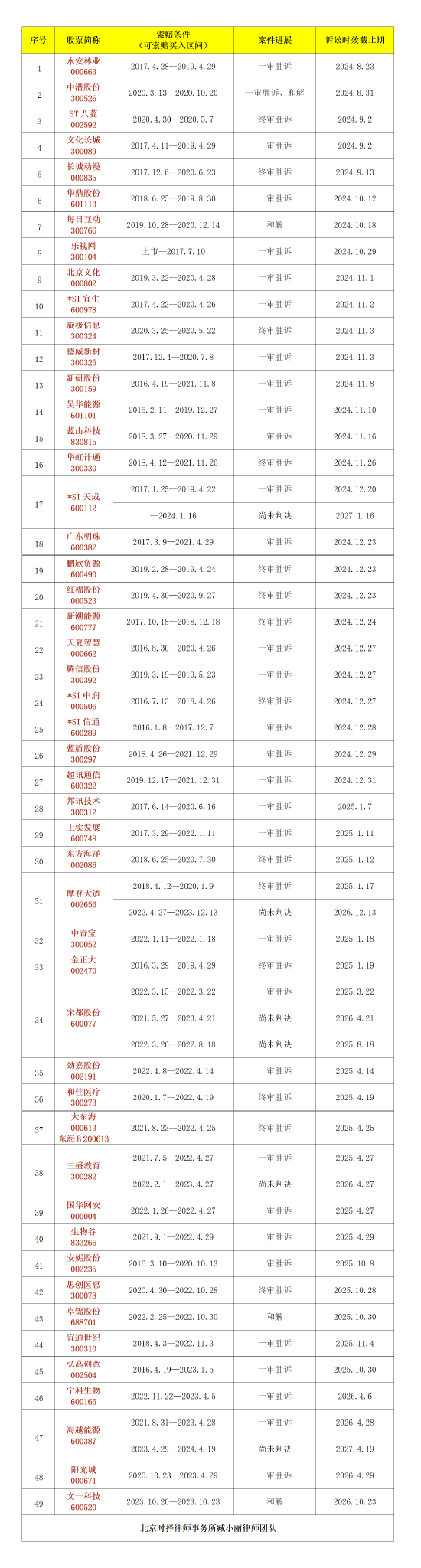 最新版!已胜诉且投资者仍可索赔的49只股票清单