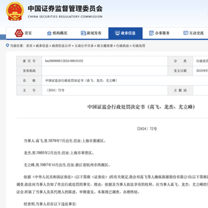 证监会公布的行政处罚决定书显示,高飞、龙杰、尤立峰三人与戚某广合谋操纵上市公司“朗源股份”的股价。戚某广为朗源股份原实际控制人、董事长。
