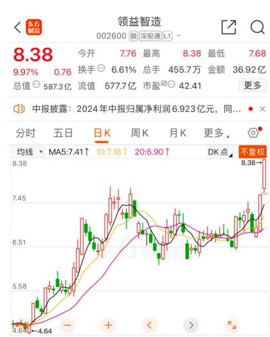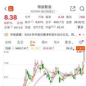 随着消费电子板块在资本市场表现强劲,“果链龙头”领益智造收获2连板。截至30日收盘,公司股价报8.38元/股,涨幅为9.97%,股价创一年最高,换手率6.61,成交量4.56亿股,总市值达587.29亿元。29日、30日成交额分别为26.7亿元、36.92亿元。