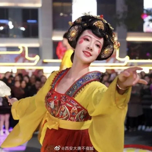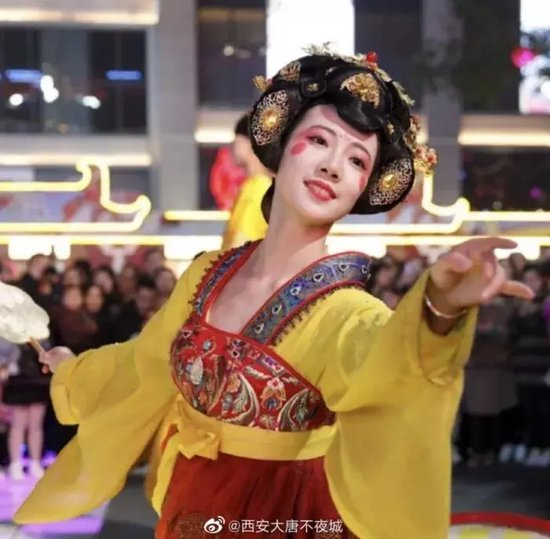 大唐不夜城步行街上经常人山人海,尤其是唐朝仕女扮相的不倒翁,那一幕风姿绰约、巧笑倩兮的“神仙牵手”堪称一绝,无数游客不远千里奔赴西安,只为一睹芳容。
