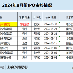 8月份,共有21家企业终止审核,较7月份的43家大幅减少。发行及募资层面,8月份共有9家企业成功IPO,合计募资53.31亿元,较7月份的6家、44.43亿元的募资额都有增长。