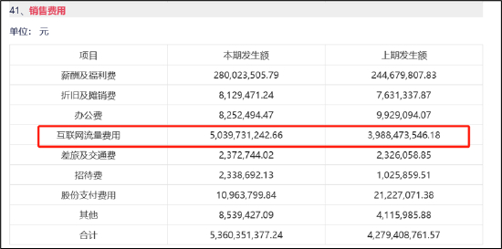 今年半年报显示,公司的销售费用高达53.6亿元,同比增长25.26%。对此,公司称,其主要系公司持续增大《寻道大千》《霸业》《无名之辈》《灵魂序章》等游戏的流量投放,使得报告期内互联网流量费增加。我们发现,公司仅流量费用高达50亿元。