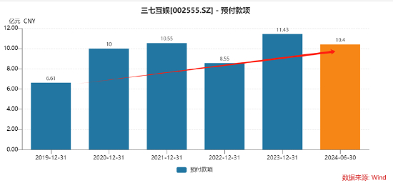 我们发现一个现象,就是三七互娱随着预付款持续高位下,公司的营收规模也极具膨胀。今年上半年的营收规模一举大幅超过2018年全年规模。