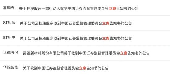 除诺德股份外,ST旭电、ST旭蓝、紫天科技、华铭智能、嘉麟杰在上周五均披露,自身或控股股东一致行动人因涉嫌信息披露违法违规被证监会立案调查。9月9日,ST旭蓝、紫天科技、华铭智能股价均大幅下跌。据统计,截至6月30日,5家上市公司(除被终止上市的ST旭电外)股东数量超过30万户。