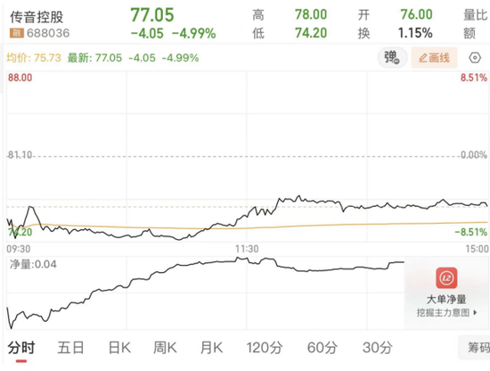 值得一提的是,增持进展公告发布后,午后传音控股股价跌幅有所收窄。截至收盘,公司股价报收77.05元/股,跌幅为4.99%,当前总市值为870亿元,较前一个交易日蒸发超45亿元。