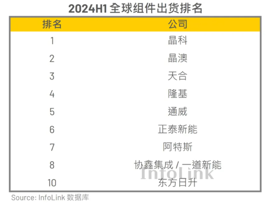 从组件市场格局来看,据infolink统计,截至2024年上半年,Top4厂家已占比Top10总量约63%,相较2023年提升了3个百分点。