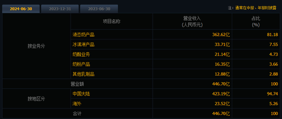 海外业务方面,2024年上半年,蒙牛乳业海外市场实现营收23.52亿元,收入占比约为5.26%,海外市场对公司总营收的贡献度还十分有限。
