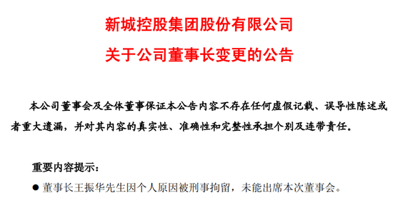 随后,新城控股公告,王振华卸去公司管理职务,其子王晓松被任命为新董事长;2020年6月19日,王振华被判刑后,新城悦服务(1755.HK)公告称,王振华为公司实际控制人,但王振华未在公司任职。
