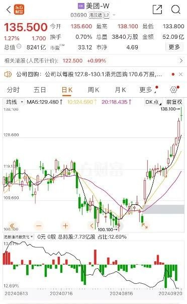 今日早盘,美团-W一度涨超3%,盘中创出年内新高价138.1港元/股,截至发稿,涨1.27%,报135.5港元/股。今年以来,美团-W累计涨幅超过65%。