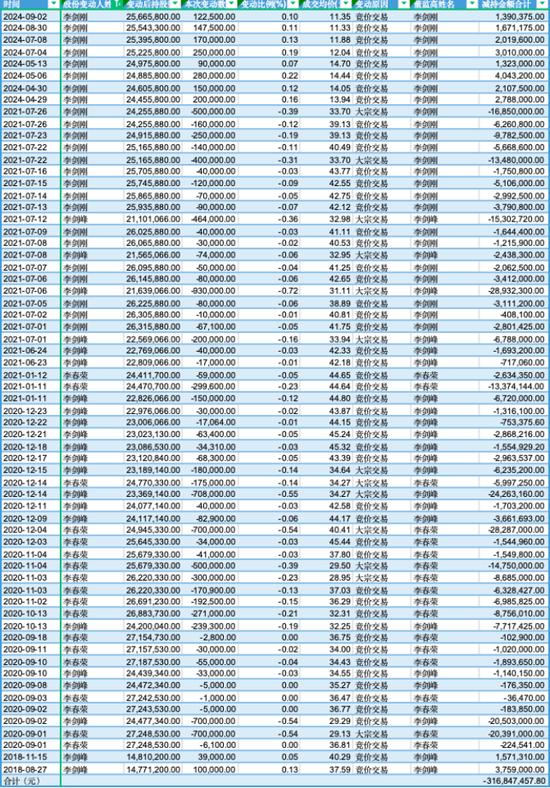 此外,风云君根据Choice统计,自公司上市以来,即使把李剑刚、李剑峰这两人的增持金额抵消后,李春荣、李剑刚、李剑峰三人合计通过减持套利将近也有3.2亿元。