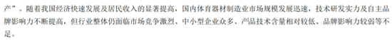 上市前,公司还算谦虚——作为行业内少数综合性体育器材供应商,产品主要