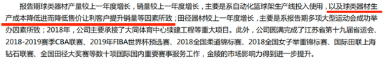 其中最大的一个原因是,当年球类器材生产成本降低,但同时公司也需要降低售价让利客户以提高销量,这与公司口中的“下游客户更加注重品牌以及产品质量,所以对价格敏感性相对较弱”的说法,显然是矛盾的。