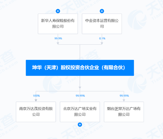 股权穿透可见,坤华天津由新华人寿保险股份有限公司、中金资本运营有限公司分别持股99.9%、0.1%。