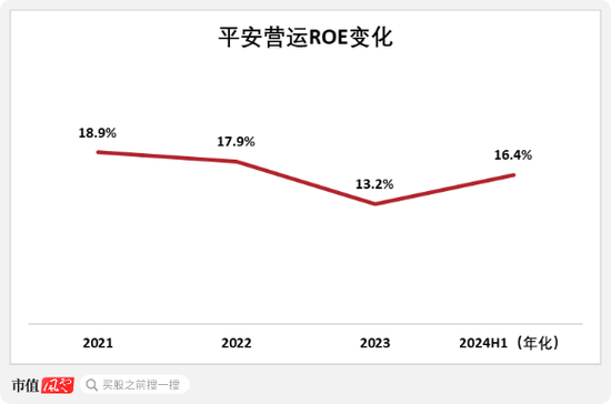 从营运ROE这一核心指标,我们看到2023年是平安营运能力的拐点之年,2024H1平安的年化营运ROE为16.4%,较2023年提高了3.2个百分点。这意味着平安的整体业务重回高质量发展轨道。
