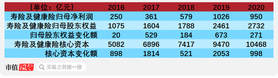 此后几年情况类似,例如2020年平安寿险归母净利润950亿元,归母股东权益增加了271亿元,而核心资本却增加了998亿元。