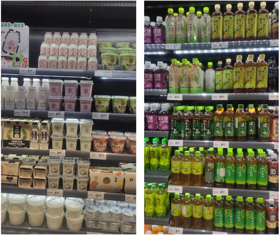 永辉超市调改门店的酸奶、饮料货架 红星资本局摄