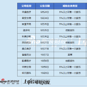 近期A股市场持续上涨,引发了一波上市公司股东、高管减持潮。9月24日至今,累计已有11家医药生物上市公司发布了股东或高管减持相关公告,涉及企业包括华康医疗、君实生物、漱玉平民、溢多利、科美诊断、共同药业、康众医疗、誉衡药业、振德医疗、华熙生物、何氏眼科。