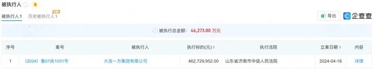 今年4月16日,一方集团还新增一条被执行信息,被执行总金额4.63亿元。