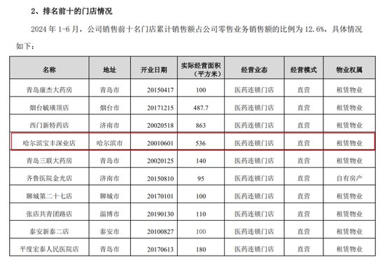 值得注意的是,涉事的哈尔滨宝丰深业店为漱玉平民的“销售担当”。据财报显示,哈尔滨宝丰深业店为直营模式,于2001年6月开业,实际经营面积536平方米,跻身漱玉平民2024年1-6月销售前十名门店之列。而2024年1-6月,漱玉平民销售前十名门店累计销售额占公司零售业务销售额的比例为12.6%。
