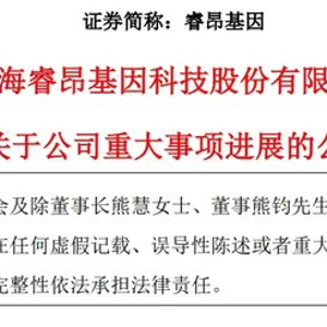 睿昂基因表示,目前公司已经选举高尚先代为履行公司法人、董事长、总经理职责,以及代为履行公司董事会相关委员会成员的职责。高尚先与熊慧为夫妻关系。