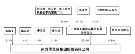 截止11月22日,黑五类集团所持有的73.52%黑芝麻股份均被质押,黑五类集团的实际控制人李汉荣和李汉朝所持有的黑芝麻100%股份被质押。黑芝麻前董事长韦清文所持有的66.47%股权也处于质押状态。