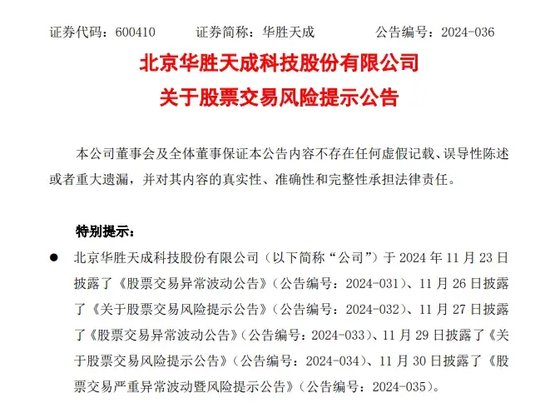 华胜天成在公告中提示,鉴于近期公司股票价格波动较大,公司股价可能存在短期涨幅较大后下跌的风险,敬请广大投资者注意交易风险,理性决策,审慎投资。