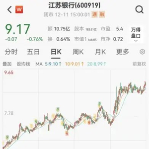 今年以来,江苏银行股价上涨明显。Wind数据显示,年初至今,江苏银行涨幅超过46%。12月11日,江苏银行收于9.17元/股,股价已处于近年来的相对高位。
