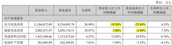 收入下滑主要是由于锂价下行,导致成本端和收入端均同比大幅下滑,这个数据通过半年报来看更直观。