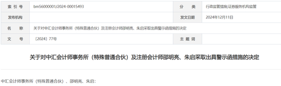12月11日,四川证监局公布对中汇会计师事务所(特殊普通合伙)及注册会计师邵明亮、朱启采取出具警示函措施的决定。中汇所执行的成都思科瑞微电子股份有限公司(思科瑞、688053)2022年、2023年年报审计执业中存在以下问题:1、业务承接:中汇所对思科瑞2023年内部控制情况进行了审计并出具了《内部控制审计报告》,但并未与思科瑞签订内部控制审计业务约定书。2、审计计划:未将收入舞弊风险的总体应对措施落实到具体审计计划并有效执行。3、风险评估:未对重要组成部分开展风险评估、对公司信息系统相关控制的了解流于形式、对公司内部控制的了解不全面。4、控制测试:部分控制测试的选样范围不恰当;部分控制测试程序设计、执行不到位,未能获取充分、适当的审计证据;内部控制缺陷识别不完整且未考虑已识别控制缺陷对审计计划的影响。5、实质性程序:应收账款函证程序不到位、分析性程序执行不到位、审计抽样存在缺陷、对收入获取的审计证据不充分、适当。6、审计底稿编制:部分审计底稿记录内容与获取的证据不一致;部分审计底稿记录不充分;对获取的部分审计证据未留档。7、发表审计意见:在2022年、2023年思科瑞年报财务报表审计中,未对相关收入获取充分、适当的审计证据,发表标准无保留意见的依据不足。四川证监局决定对中汇所及邵明亮、朱启采取出具警示函的监督管理措施并记入证券期货诚信档案。
