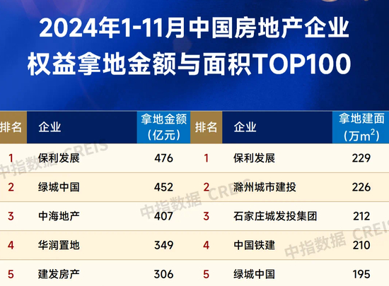 据中指研究院统计,今年前11月华润置地以349亿元拿地金额排名第四,全口径新增货值1091亿元,排名第一;权益新增货值826亿元,排名第三。