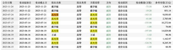 2023年6月15日-2023年7月21日,高光荣分6次合计减持699.74万股,比原计划多减持了近200万股。合计套现4.63亿元。