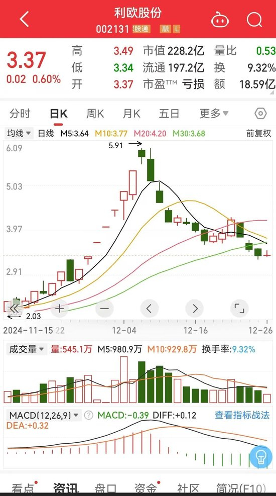 11月中旬以来,随着AI应用概念股的爆发,A股的相关概念股大涨。利欧股份成为了最大的赢家,仅仅15个交易日,公司就拉出11个涨停板,最高涨幅超过185%,市值一度超过400亿元。