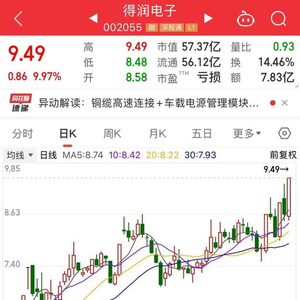 近日,在铜缆高速连接板块的持续火热背景下,得润电子股价持续攀升,12月以来股价累计上涨27.21%。昨日该股以涨停收盘,最新股价报9.49元/股。