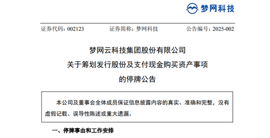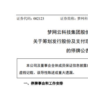 A股突发!又一重大资产重组,梦网科技明起停牌
