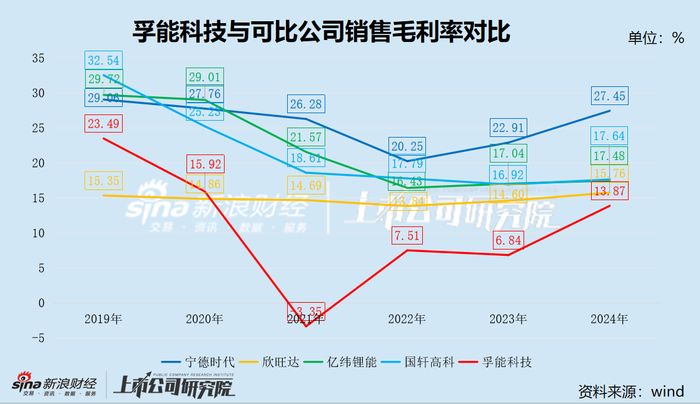 盈利能力天壤之别的背后,孚能科技的毛利率严重掉队。