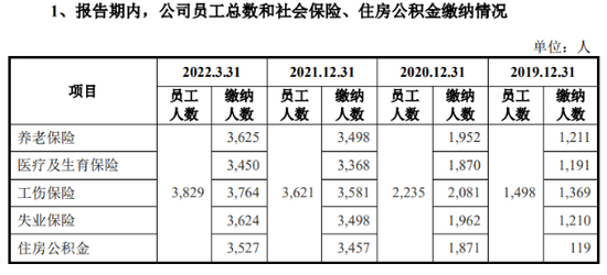对此蜜雪冰城解释称,根据公司原执行的内部社会保险缴纳规定,员工因不同岗位性质需满足一定入职时间后才可以缴纳社会保险,导致公司报告期内(此处指2019年-2021年以及2022年1-3月)存在未为部分员工缴纳社会保险的情形。