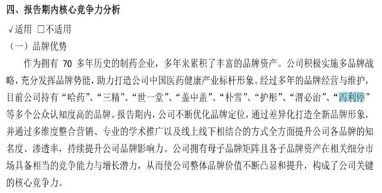 如此看来,即便国家药监局决定注销颠茄磺苄啶片在我国的药品注册证书,“泻利停”仍然是哈药股份不愿放弃的“金字招牌”。