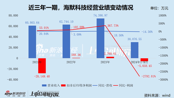 2023年1月,苏占才接手海默科技后,公司当年经营业绩实现大幅增长。然而,2024年便被“打回原形”,前三季度营收及净利润双双下滑,再度陷入亏损。