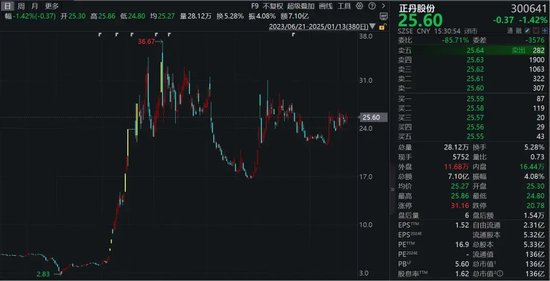 值得一提的是,二级市场表现上,正丹股份是2024年最受市场关注的个股之一。在2024年2月7日创出2024年年内最低价2.83元之后,正丹股份股价便直接开启上涨之旅,2024年2月7日至2025年1月13日,正丹股份股价累计涨超722.72%,报25.60元/股,总市值为136亿元。