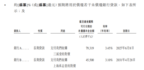 偿还的两笔银行贷款,主要是同仁堂医养此前用于支付收购三溪堂、上海承志堂的对价,截至目前,未偿还本金为7931.9万元、4550万元。