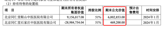 2023年7月,同仁堂子公司北京同仁堂商业投资集团有限公司,将持有的北京同仁堂鞍山中医医院、北京同仁堂石家庄中医医院51%的股权转让给同仁堂医养,转让对价分别为600.29万元、46.92万元。