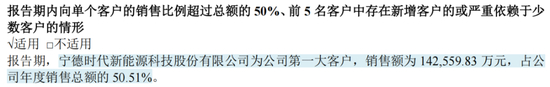 历史上多数年份,宁德时代都是公司第一大客户,以2022年为例,对宁德时代销售占比达50.5%。