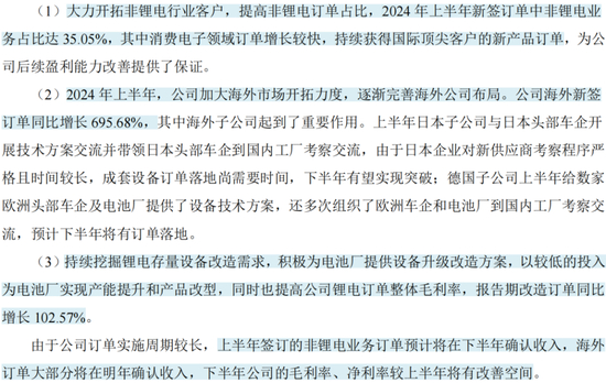 此外,公司还在挖掘锂电存量设备改造需求,2024年上半年改造订单同比增长102.6%。