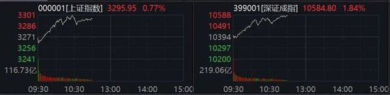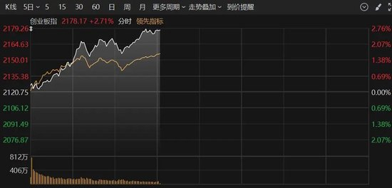盘面上,绝大部分行业板块走强,光伏、人工智能、无人驾驶、元器件等板块涨幅居前,仅银行、电信服务、电力等少数板块微幅调整。