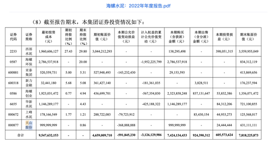 其中,交易性金融资产减少223.91亿元。据海螺水泥披露,亚泰集团、上峰水泥、天山股份等类似交易被计入这一科目。