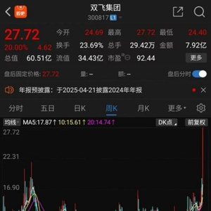 2月20日晚间,双飞集团发布公告称,公司股票连续3个交易日(2025年2月18日、2025年2月19日、2025年2月20日)内日收盘价涨幅偏离值累计超过30%,属于股票交易异常波动。公司前期披露的信息不存在需要更正、补充之处;公司未发现近期公共传媒报道了可能或者已经对公司股票交易价格产生较大影响的未公开的重大信息;近期公司经营情况及内外部经营环境未发生重大变化。