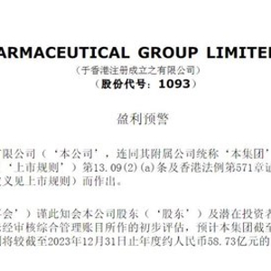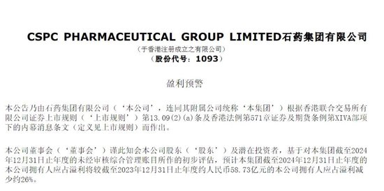 2月25日盘后,石药集团发布盈利预警。