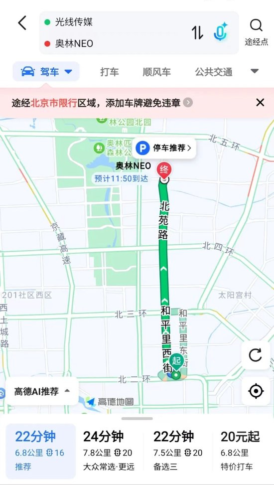 两者之间仅相差6.8公里,租金相差同样不高。高德地图显示,光线传媒现总部的雍和航星园租金为3元/m²/天,而奥林NEO的租金为3-4元/m²/天。