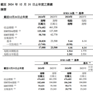 3月20日晚间,长和发布2024年财报。报告显示,2024年净利润下降27%至170.88亿港元,低于分析师预期的225亿港元。全年营收达4766.82亿港元,高于去年的4615.58亿港元。公司宣布全年派息每股2.2港元,低于去年的每股2.53港元。