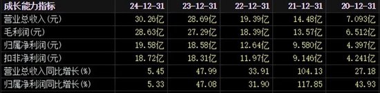2024年年报显示,2024年爱美客实现营收30.26亿元,同比增长5.45%;实现归属净利润19.58亿元,同比增长5.33%。经对比可见,爱美客2024年的业绩增速创下2020年上市以来新低水平。